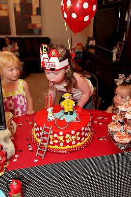 When my girly~girl declared she wanted a firefighter party for her 3rd Birthday, I was not a bit surprised since she makes me promise on a regular basis that she can fight fires when she gets big. Immediately I started searching for party decorations and had very little luck, so I dreamed up my own.