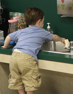 Gavin was afraid of nothing and needed no explanation on what he was suppose to do at each station. He ran around like a maniac but never acknowledged the other kids in the room, so why did their Momma's think it was important to comment on my very active two year old toddler, oh and let me not forget...that is a BOY!